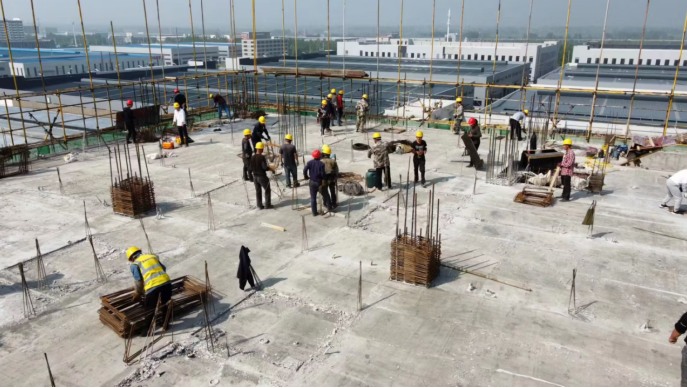 安徽建工二建第三分公司長豐新能源汽車配套產業園項目總用地面積約200畝,總建筑面積為16萬平方米,其中地上建筑面積為15.7萬平方米,地下建筑面積約為3000平方米,施工內容主要包括7棟工業化廠房及一棟綜合樓,室外配套道路、給排水、供配電、景觀綠化等基礎設施工程等。目前項目1-7#廠房進入收尾階段,確保在4月底完成單體全部工程量,具備單體竣工驗收要求;綜合樓八層主體結構搶工階段,確保5月中旬結構封頂。