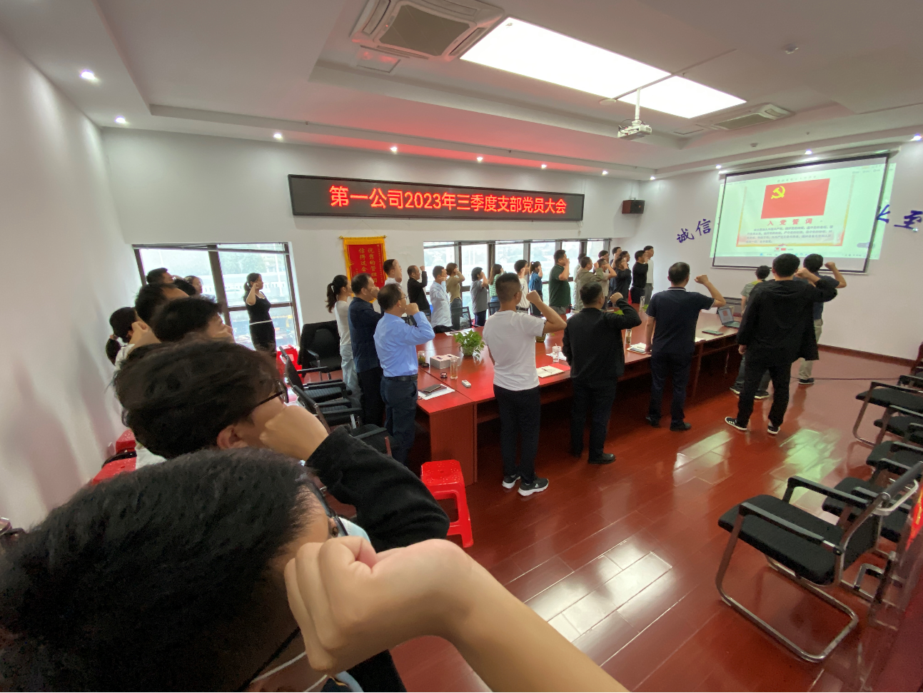 9月22日下午,第一公司在四樓會議室召開2023年三季度支部黨員大會,第一公司全體黨員參會。