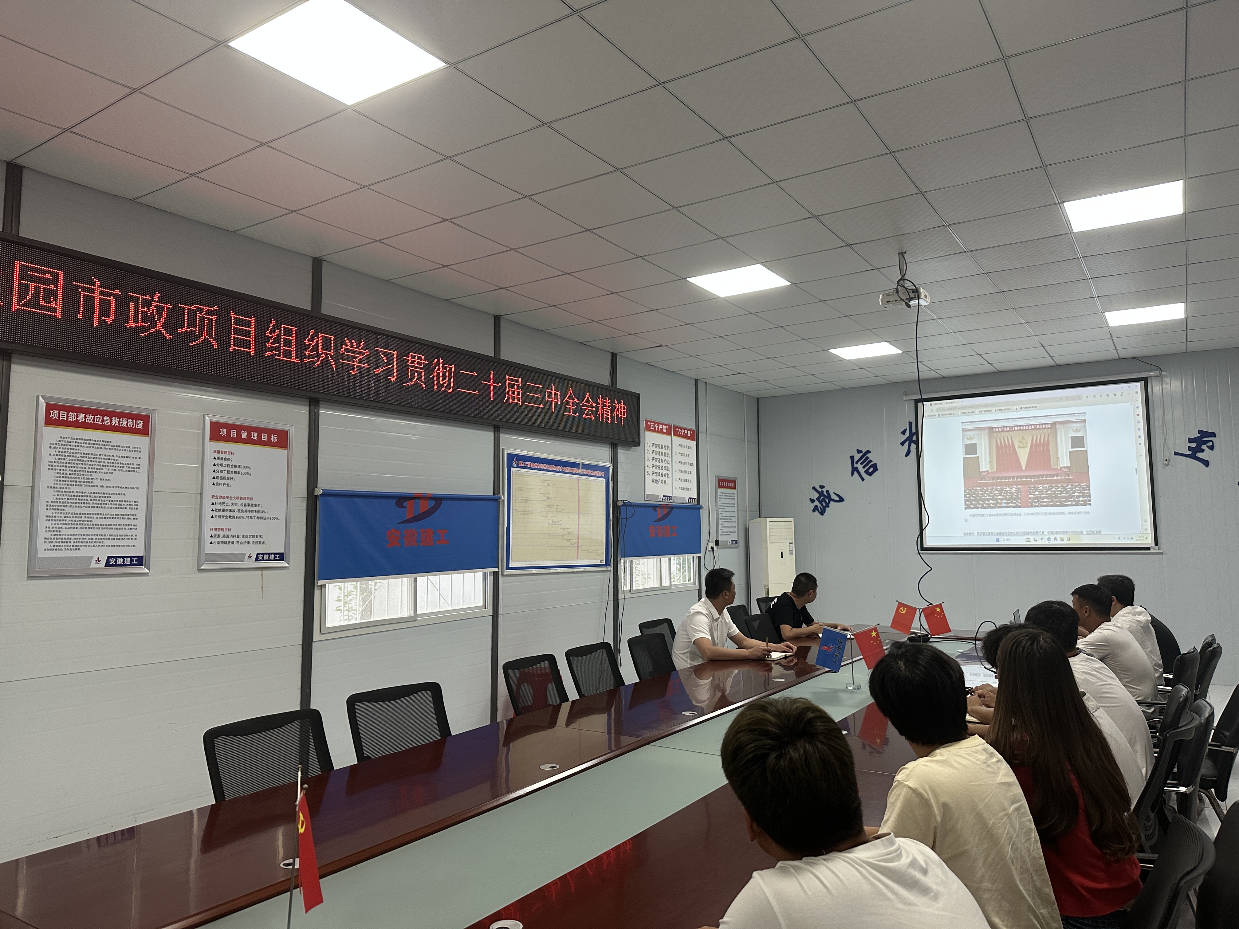 8月7日宿徐現代產業園市政項目組織學習貫徹黨的二十屆三中全會精神。會上傳達學習了《中共中央關于進一步全面深化改革 推進中國式現代化的決定》《黨的二十屆三中全會精神解讀》等文件,并聯系工作實際開展學習研討。