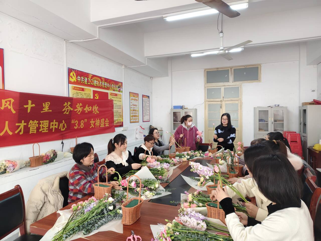 20253月8日是我國第102個“三八婦女節”,為豐富女職工精神文化生活,緩解工作生活壓力,提高團隊凝聚力,7午,人才管理中心工會在二樓會議室特別組織了“春風十里 芬芳如你”創意插花活動,帶領女職工們感受節日的儀式感,享受浮生花開,月靜日長。