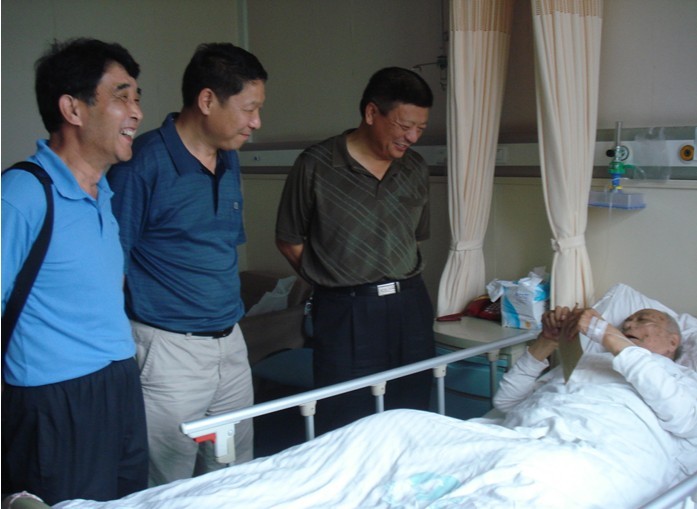 圖為公司黨委書記朱治淮(右一)、工會主席李林(右二)在省立醫院看望老干部劉弘毅
