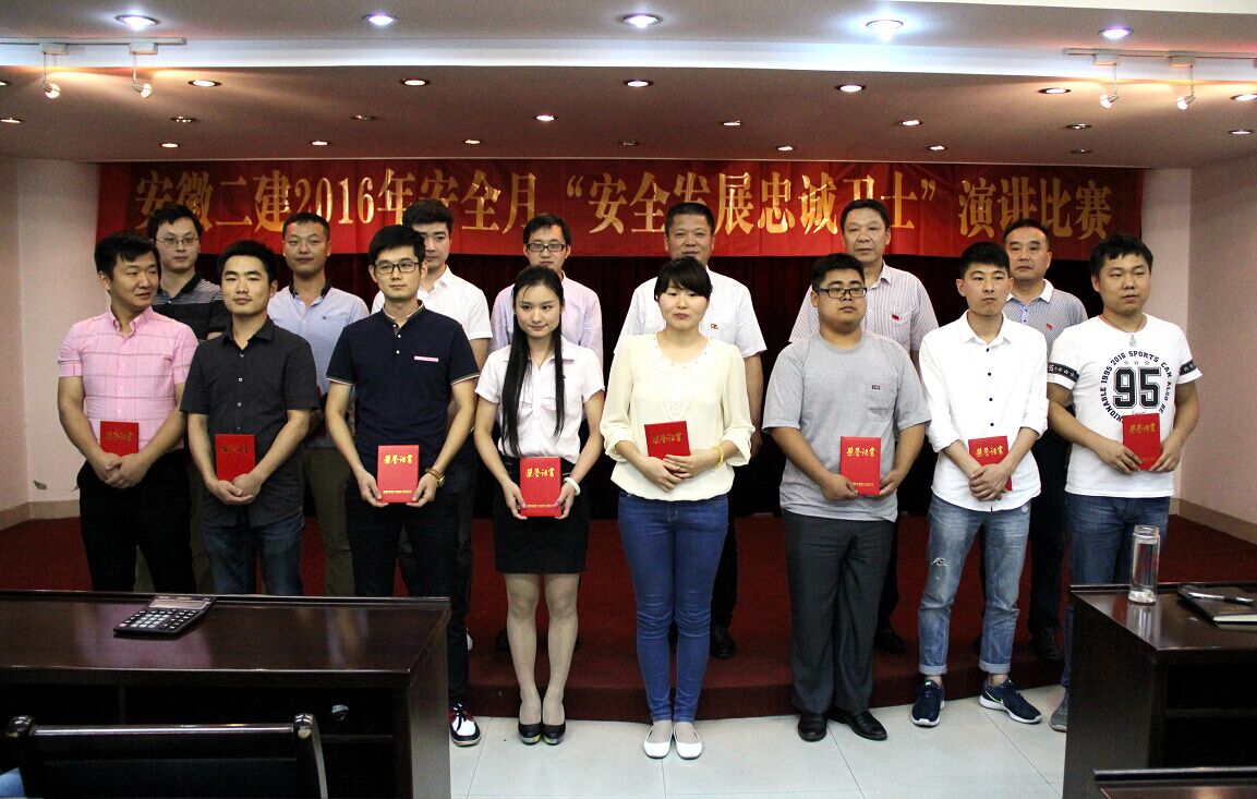 6月28日下午,第十五個安全活動月中,安徽二建公司工會與安全管理部聯合組織開展“安全發展忠誠衛士”演講比賽活動,來自公司機關及基層單位12名選手參加比賽,他們通過身邊安全生產管理細微小事、安全事故發生案例等一個個生動的演講主題,喚醒大家牢記安全為天意識,珍愛生命,強化安全管理工作的理念。最后經過評委評分,公司機關張琪獲得一等獎,海外發展公司王南岳、后勤綜合服務部葉錫峰獲二等獎,三分公司劉振中、一分公司徐欣琪、一分公司李曉崗獲三等獎,邵進等6人獲優秀獎。