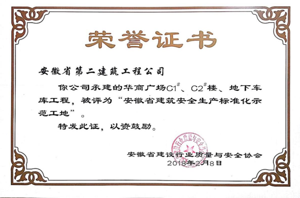 華商廣場項(xiàng)目建設(shè)至今無任何安全生產(chǎn)事故發(fā)生,現(xiàn)場文明施工環(huán)境秩序井然,在公司率先啟用VR安全體驗(yàn)館開展作業(yè)人員安全教育,嚴(yán)格落實(shí)合肥市揚(yáng)塵治理環(huán)保措施及公司安全生產(chǎn)文件規(guī)定,以建筑施工安全檢查標(biāo)準(zhǔn)JGJ59-2011、建筑安全生產(chǎn)標(biāo)準(zhǔn)化示范工地評價(jià)標(biāo)準(zhǔn)DB34/T5040-2016、集團(tuán)標(biāo)準(zhǔn)化圖冊為主要?jiǎng)?chuàng)建抓手、堅(jiān)持“安全責(zé)任、重在落實(shí)”。項(xiàng)目先后獲得“安徽建工集團(tuán)安全文明標(biāo)準(zhǔn)化示范工地”、“合肥市安全文明標(biāo)準(zhǔn)化示范工地”、“集團(tuán)黨員先鋒號”等多項(xiàng)榮譽(yù)。