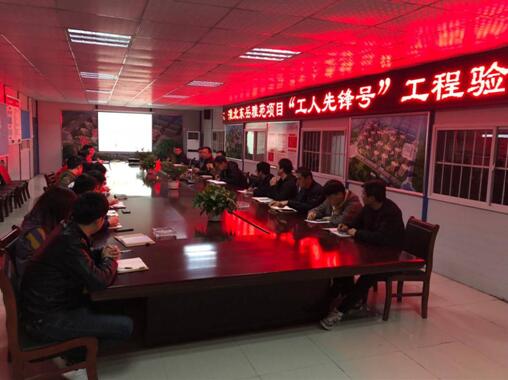 會上項目部圍繞“四個一流”匯報了爭創集團“工人先鋒號”的主要做法及其成效,通過PPT播放一一展示,得到領導們一致認可。蒯家江強調要調動項目部全體職工工作熱情和工作干勁,發揚艱苦奮斗、攻堅克難的敬業精神,傳承“傳、幫、帶”精神,把項目上的年輕人打造成公司骨干力量。楊松代表集團工會對項目部提出幾點意見:一是創建工作要持之以恒,結合勞動競賽全力維護好、完成好工程項目。二是要加強宣傳,總結經驗。三是要堅持以人為本,關心職工生活,努力打造一流團隊。