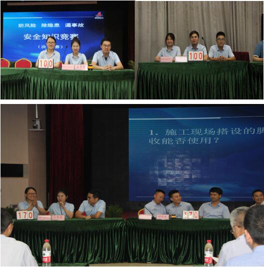 在2019年全國第18個“安全生產月”期間,為更好地促進集團公司廣大職工深入學習掌握行業安全生產相關法律法規及標準規范,認真貫徹落實“安全第一、預防為主、綜合治理”方針,強化“安全為天 生命至上”理念,6月12日下午,在集團公司三樓會議室隆重舉行“防風險、除隱患、遏事故”主題安全知識競賽活動,共25支代表隊參賽,公司安全總監曹建,總經理助理、工會副主席蒯家江帶隊參賽。