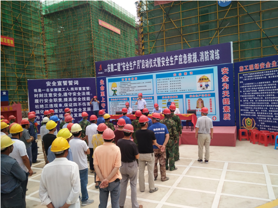 6月16日上午,安全管理部組織、信訪保衛(wèi)部及后勤綜合服務(wù)部協(xié)同在五分公司固鎮(zhèn)名邦國際花都項(xiàng)目開展6.16安全咨詢?nèi)铡踩摹⒑灻?yīng)急救援演練、職工體檢、安全主題宣講、安全生產(chǎn)經(jīng)驗(yàn)交流、安全教育場(chǎng)館體驗(yàn)、安全宣傳圖牌展覽等一系列“安全生產(chǎn)月”宣傳教育活動(dòng),分管安全副總經(jīng)理葉和永任總指揮,項(xiàng)目部全體管理人員及工人共一百余人參加。