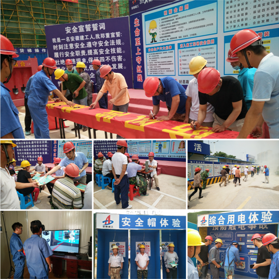 活動(dòng)當(dāng)天,共發(fā)放安全宣傳資料100余份,接受項(xiàng)目職工咨詢50余人次;開展預(yù)防高墜、中暑及火災(zāi)救援演練;給工友們體檢,告知夏季高溫季節(jié)施工注意事項(xiàng);帶工友們觀看圖片展覽,講解安全生產(chǎn)知識(shí),到安全教育體驗(yàn)館進(jìn)行實(shí)體和VR虛擬體驗(yàn);現(xiàn)場(chǎng)全體人員參與宣誓及簽名活動(dòng)。現(xiàn)場(chǎng)活動(dòng)結(jié)束后,安全管理部在會(huì)議室開展安全主題宣講活動(dòng),帶領(lǐng)項(xiàng)目職工學(xué)習(xí)《安全生產(chǎn)條例》及《建筑安全生產(chǎn)標(biāo)準(zhǔn)化示范工地評(píng)價(jià)標(biāo)準(zhǔn)》(DB34/T5040-2016),組織項(xiàng)目管理人員開展安全生產(chǎn)經(jīng)驗(yàn)交流會(huì),總結(jié)工作亮點(diǎn),查找不足,促進(jìn)今后工作的順利開展。