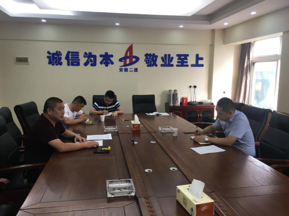 2019年9月25日,建工控股信訪保衛部主管邢浩對安徽二建的不穩定因素調研摸排,在公司三樓會議室召開會議。后勤綜合服務部主任錢能虎、信訪保衛部全體人員參會
