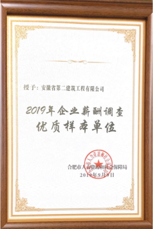 安徽二建公司連續(xù)兩年獲“企業(yè)薪酬調(diào)查優(yōu)質(zhì)樣本單位”稱號