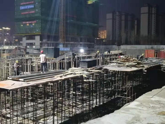 自9月勞動競賽開展以來,四分公司璞羽西苑項目施工現場每天晚上燈火通明,呈現出一片大干快上的繁忙景象。各班組搶進度、保工期、促產值,大家加班加點,眾志成城,只為一個目標--早日完成工程建設任務。截止到第七周,璞羽西苑項目已完成各棟主樓混凝土總澆筑量17000m³,完成鋼筋加工及綁扎1900余噸,完成防水卷材鋪貼14000㎡,已累計完成施工產值3069萬元,占勞動競賽目標產值的68%。