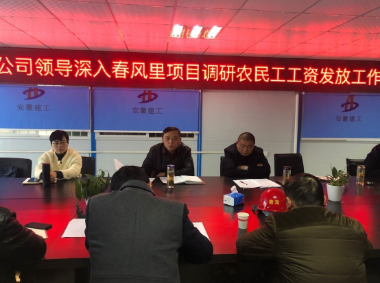 根據(jù)集團公司《關(guān)于開展拖欠農(nóng)民工工資專項排查工作的通知》的要求,12月9日,公司黨委副書記、紀委書記仇多維對項目的農(nóng)民工工資發(fā)放問題進行調(diào)研,信訪保衛(wèi)部、工程管理部、人力資源部相關(guān)人員陪同。