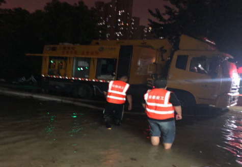 7月18日,合肥遭受77年一遇單日最大降雨。藍天公寓和大興鎮興泰苑出現內澇,情況緊急,人民群眾生命財產安全遭受威脅,汛情就是戰斗令,二分公司接到指令,馬上組建30余人的抗洪突擊隊,緊急調運大功率水泵2臺,配電箱2個,80米電線電纜,300米水管等防汛物資,20分鐘極速趕到抗洪前線。現場有的架設水泵、有的鋪設電纜、有的配合抽水排澇,分工明確、爭分奪秒。經過數小時的緊急救援,至凌晨,災情得到有效控制。奮戰了8個小時的志愿者們才撤出前線。