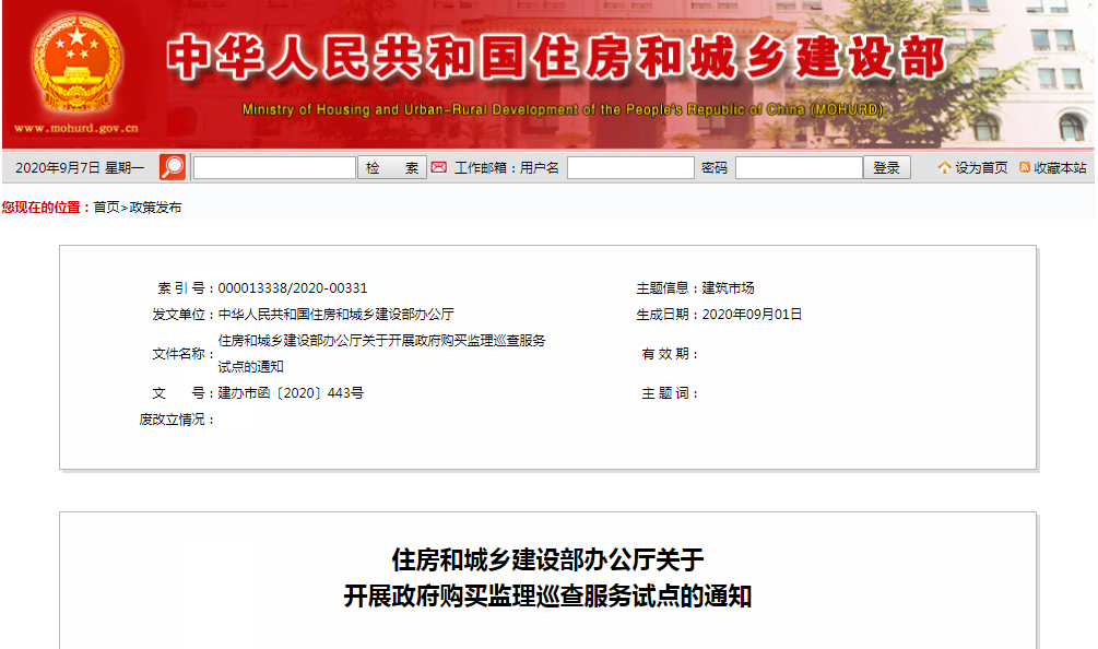 住房和城鄉建設部開展政府購買監理巡查服務試點