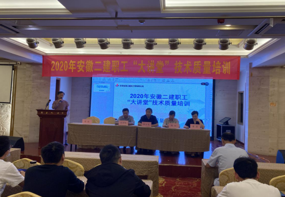 為提高公司項目管理人員業務技能和工作積極性,做好在建項目施工過程中的技術質量管控9月23日,安徽二建公司人力資源部、技術質量部開展了2020年技術質量“大講堂”活動,對分公司相關科室及項目技術質量管理人員80人進行了培訓此次培訓特別邀請了安徽三建副總經理王興明前來授課。