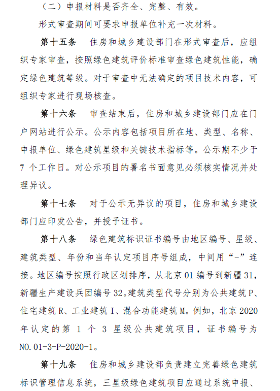 《辦法》規定,住房和城鄉建設部負責制定完善綠色建筑標識制度,指導監督地方綠色建筑標識工作,認定三星級綠色建筑并授予標識。省級住房和城鄉建設部門負責本地區綠色建筑標識工作,認定二星級綠色建筑并授予標識,組織地市級住房和城鄉建設部門開展本地區一星級綠色建筑認定和標識授予工作。
