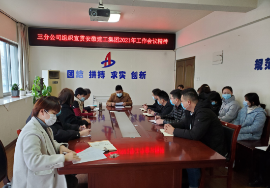 為及時傳達落實安徽建工集團控股有限公司2021年工作會議精神,近期,安徽二建公司通過制作會議內容展板、召開學習會議等方式,供廣大職工學習。通過學習宣貫,定信心、鼓干勁、葆初心、明思路,確保會議精神傳達到每一個崗位、每一名員工。引導員工深刻理解會議精神和內涵,把思想和行動統一到做好今后各項工作上去。