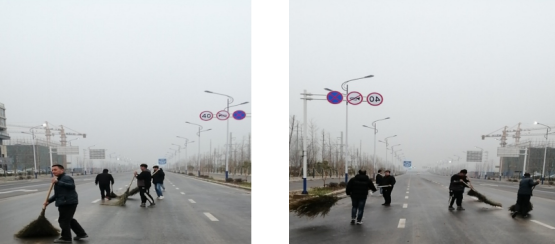 3月19日,二分公司琨宇悅湖城項目部與城管部門聯(lián)系主動承擔(dān)清掃陳集路和廬陽大道路面衛(wèi)生,項目管理人員在項目經(jīng)理姚鵬的帶領(lǐng)下,拿起掃把垃圾桶,清理下雨后路面留下的落葉及垃圾,大家干勁十足,落葉及垃圾很快得到清理,得到了城管部門的認可。