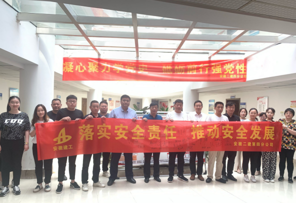 6月1日上午,安徽二建公司在六分公司文一春風里項目舉行“安全生產月”啟動儀式,公司安委會成員,安全管理部、工會全體人員,所屬各單位分管安全、質量副經理、安全科長,在肥項目經理共百余人參加。