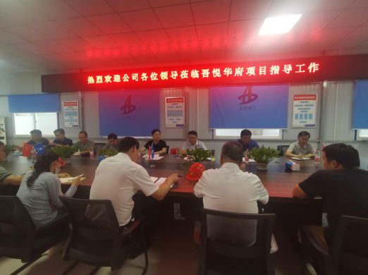 6月18日上午,安徽二建公司總經(jīng)理李建成、副總經(jīng)理葉和永、副總經(jīng)理費(fèi)勤波赴銅陵吾悅?cè)A府項(xiàng)目調(diào)研指導(dǎo)工作,安全管理部、物資設(shè)備部、工程管理部等部門負(fù)責(zé)人及分公司主要領(lǐng)導(dǎo)班子成員隨同調(diào)研并參與座談。