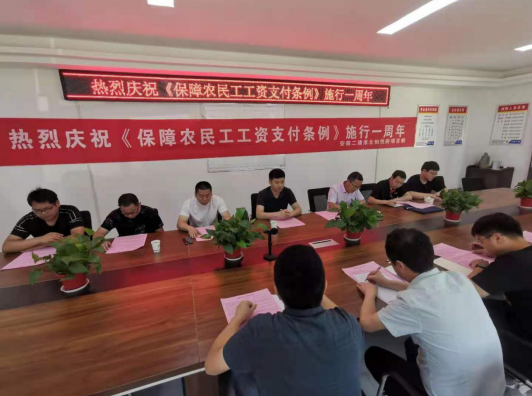 5月28日上午,淮北市相山區住建局局長衛紅干、淮北市相山區勞動局局長吳澤宇攜淮北市電視臺至一分公司鉑悅府項目舉辦慶祝《保障農民工工資支付條例》施行一周年活動。