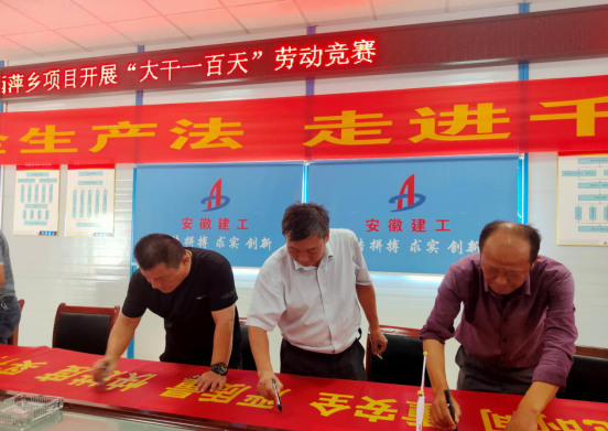 會上,項(xiàng)目經(jīng)理程克敏宣讀了勞動競賽文件,重點(diǎn)圍繞施工生產(chǎn)進(jìn)度、安全質(zhì)量、成本管控等方面鼓勵并號召全體管理人員、協(xié)作隊(duì)伍群策群力,希望通過此次大干一百天勞動競賽活動,營造濃厚的工作氛圍,通過做周對比、月考核,確保完成節(jié)點(diǎn)工期任務(wù)。