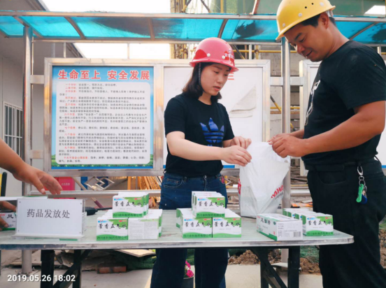 在施工現(xiàn)場,黨支部書記鄭婭代表項目部向一線班組人員送去防暑降溫的藿香正氣水、風油精等藥品,并囑咐他們一定要做好工人健康、安全防護工作,合理安排工序和工作量,合理調整工人作息時間,盡可能避開高溫時段,在保證安全的前提下,圓滿完成各項工作任務。