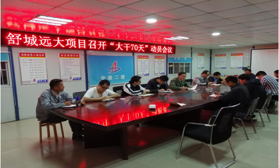 10日晚,為了響應(yīng)公司組織勞動(dòng)競(jìng)賽的號(hào)召,激發(fā)項(xiàng)目上下的生產(chǎn)熱情,達(dá)到并超越既定的生產(chǎn)目標(biāo),舒城遠(yuǎn)大項(xiàng)目部全體管理人員在會(huì)議室召開(kāi)“大干70天”勞動(dòng)競(jìng)賽動(dòng)員會(huì)議。