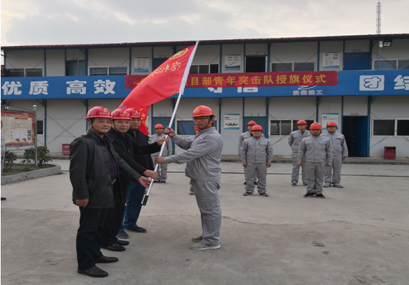 11月20日,宿松項目部結合公司“大干60天”勞動競賽活動熱潮,在公司工會、團委的支持下組建了安徽二建首支“青年突擊隊”,公司工會主席李林、副主席蒯家江、分公司支部書記陳習武應邀參加了“青年突擊隊”授旗儀式并進行授旗。