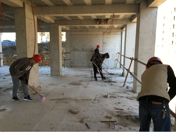 康斯坦丁6000套項目部組織人員參與放線清理樓道