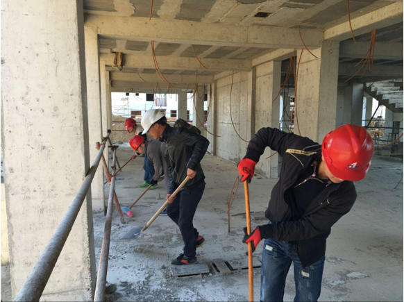 近日,由于工人到期回國人數較多,為滿足業主交房要求,阿爾及利亞康斯坦丁6000套工程項目部動員項目管理人員進行樓層垃圾清理,參與現場放線測量。