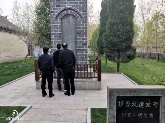 活動當日,項目青年走進紀念館大門,首先映入眼簾的是一尊英姿颯爽的彭雪楓騎馬雕像,四周被青翠的松柏掩映。在銅像的東側,屹立著一座彭雪楓德政碑。紀念館東側院落為新四軍第四師司令部舊址,包括作戰(zhàn)室、機要室、彭雪楓舊居等16間房屋,房屋內陳列著作戰(zhàn)地圖、電報機等一些革命文物;紀念館西側院落室內陳列有與彭雪楓同志相關的各類圖片資料和當時軍民用于生產、生活、抗戰(zhàn)的革命文物。