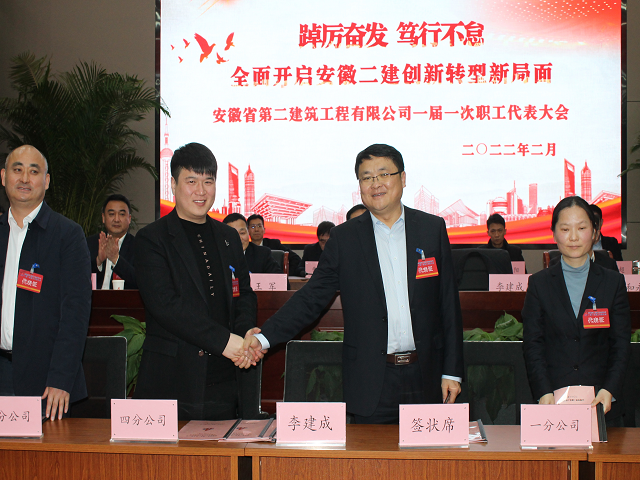 大會聽取并審議通過了《總經(jīng)理工作報告》《2021年度財務決算及2022年度財務預算報告》《2021年度業(yè)務招待費執(zhí)行情況報告》《集體合同》《女職工權益保護專項集體合同》《安徽二建公司企業(yè)年金制度管理辦法》等8項議案草案及《大會決議》。會上,簽訂了《基層黨支部2022年目標責任書》《所屬單位2022年目標責任書》《2022年集體合同》《女職工權益保護專項集體合同》。