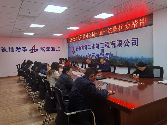 2月28日,安徽二建公司一屆一次職工代表大會(huì)勝利召開(kāi)。會(huì)議結(jié)束后,第五分公司積極行動(dòng),迅速掀起貫徹學(xué)習(xí)職代會(huì)精神熱潮。