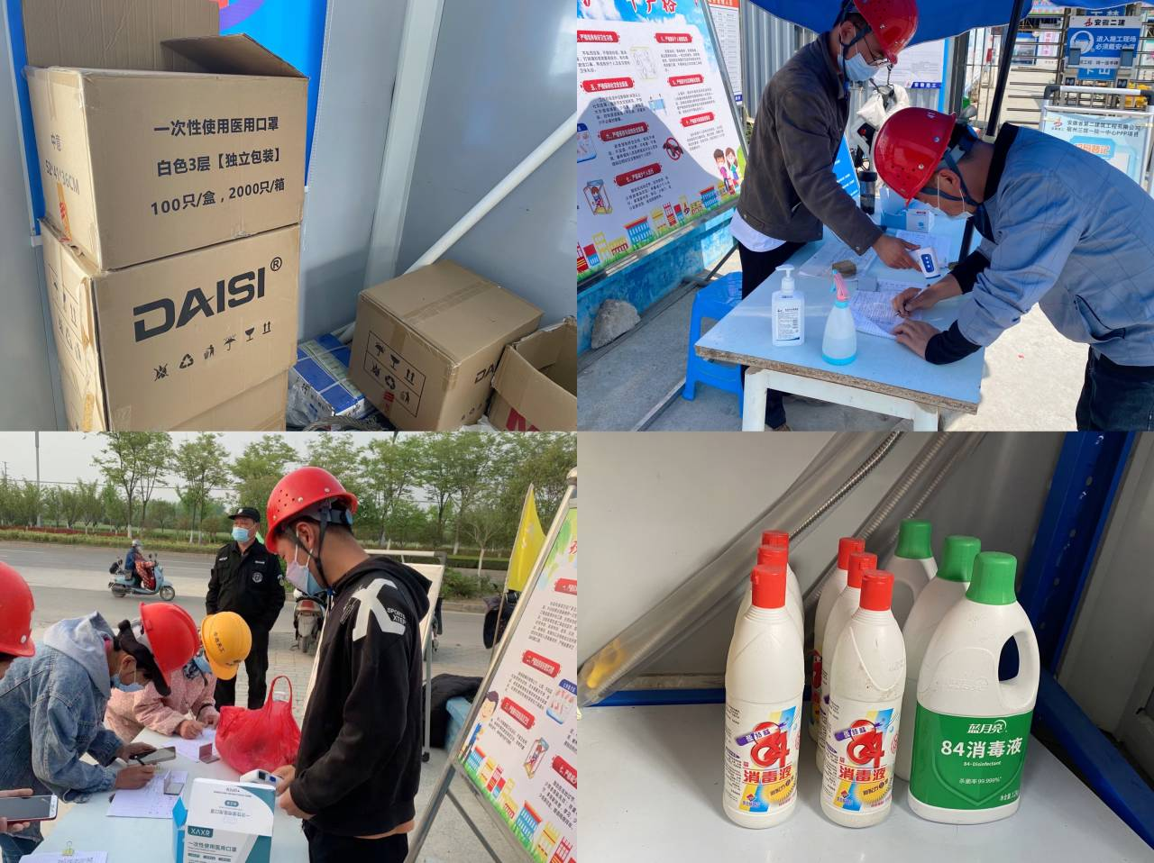 宿州項目部有條不紊地推進施工任務,在克服當前疫情造成材料供應緊張的同時,制定周全的搶工計劃,通過梳理可利用資源,開源節流,對材料周轉加強管控,促進項目運轉高效,確保完成各項節點計劃。節日期間,每日進出工地人數達200多人,因外部疫情嚴峻復雜,項目部實行了更加嚴格的工人進出場管理,對每個進入工地的工人核查健康碼、行程碼以及核酸檢測結果,為保證聯防聯控無死角,項目部還聯系社區,組織人員定期進行核酸檢測。此外采購了消毒液、酒精、口罩等防疫物資,確保工地現場防疫物資充足。