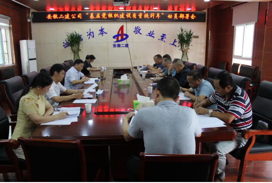會(huì)議傳達(dá)了《安徽二建公司“基層黨組織建設(shè)質(zhì)量提升年”活動(dòng)實(shí)施方案》內(nèi)容,圍繞三個(gè)著力,以9項(xiàng)重點(diǎn)任務(wù)為抓手,從總體思路、重點(diǎn)任務(wù)、工作部署、有關(guān)要求四個(gè)方面對(duì)“基層黨組織建設(shè)質(zhì)量提升年”進(jìn)行再動(dòng)員再部署。