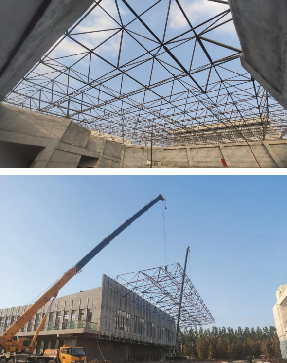 目前,體育中心鋼網架起頭部分已吊裝完成,為下一步順利施工奠定基礎。項目團隊將繼續以高標準、嚴要求,提高工程質量,完成項目建設目標。